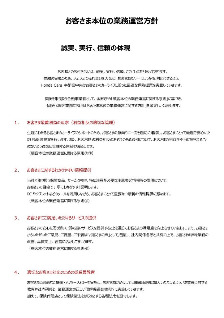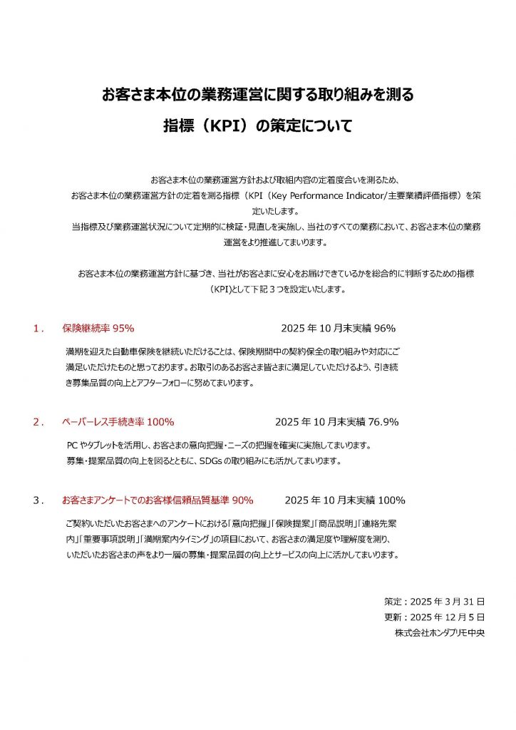 保険勧誘方針/お客さま本位の業務運営方針/お客さま本位の業務運営に関する取り組みを測る指標(KPI)の策定について